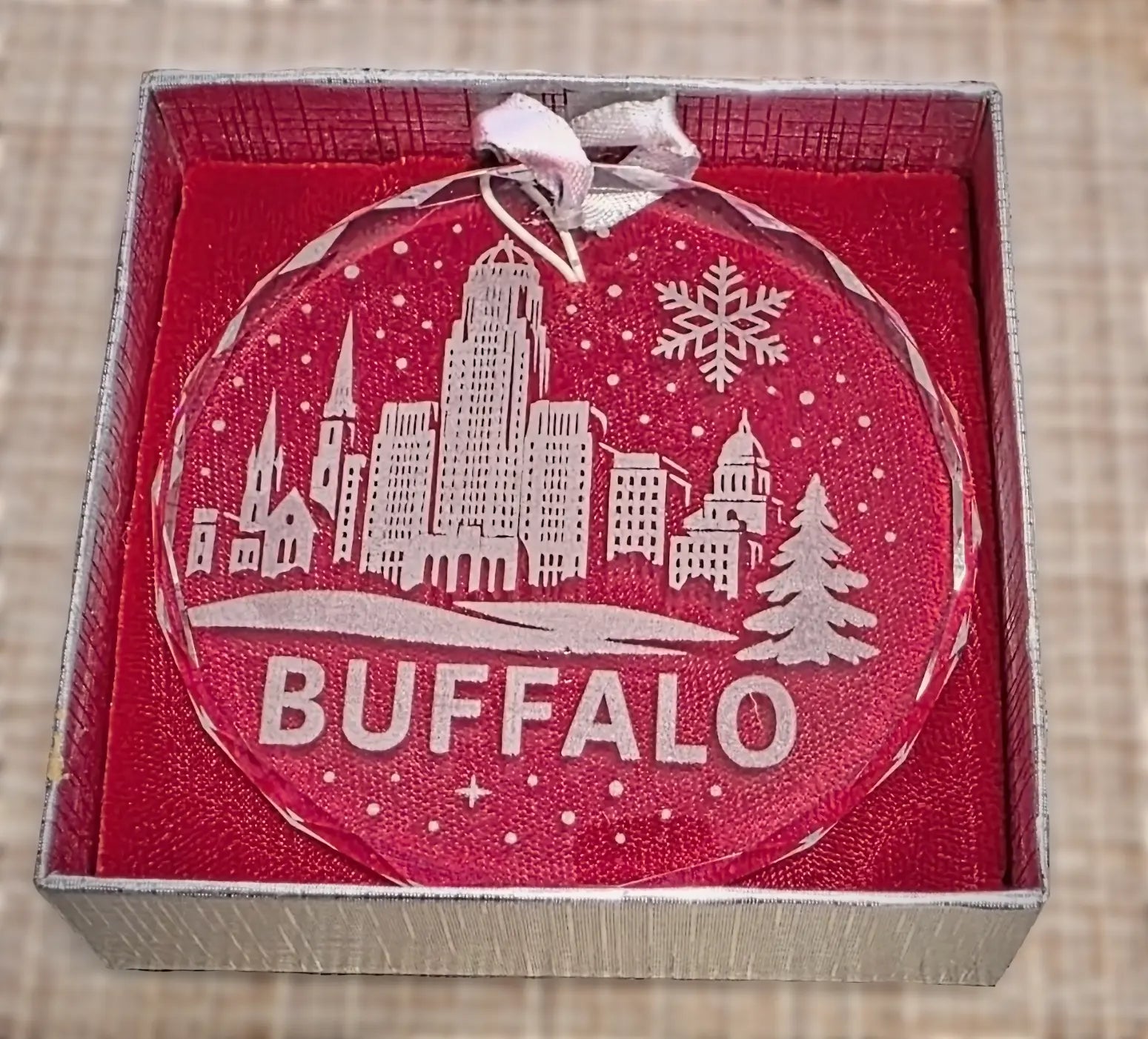 Each ornament includes a silver hanging ribbon and comes packaged in a beautiful silver gift box — perfect for gifting, displaying, or sending to someone who loves Buffalo as much as you do. Whether given at Christmas, for a housewarming, or simply "just because," this ornament is a meaningful keepsake for anyone connected to the Queen City.